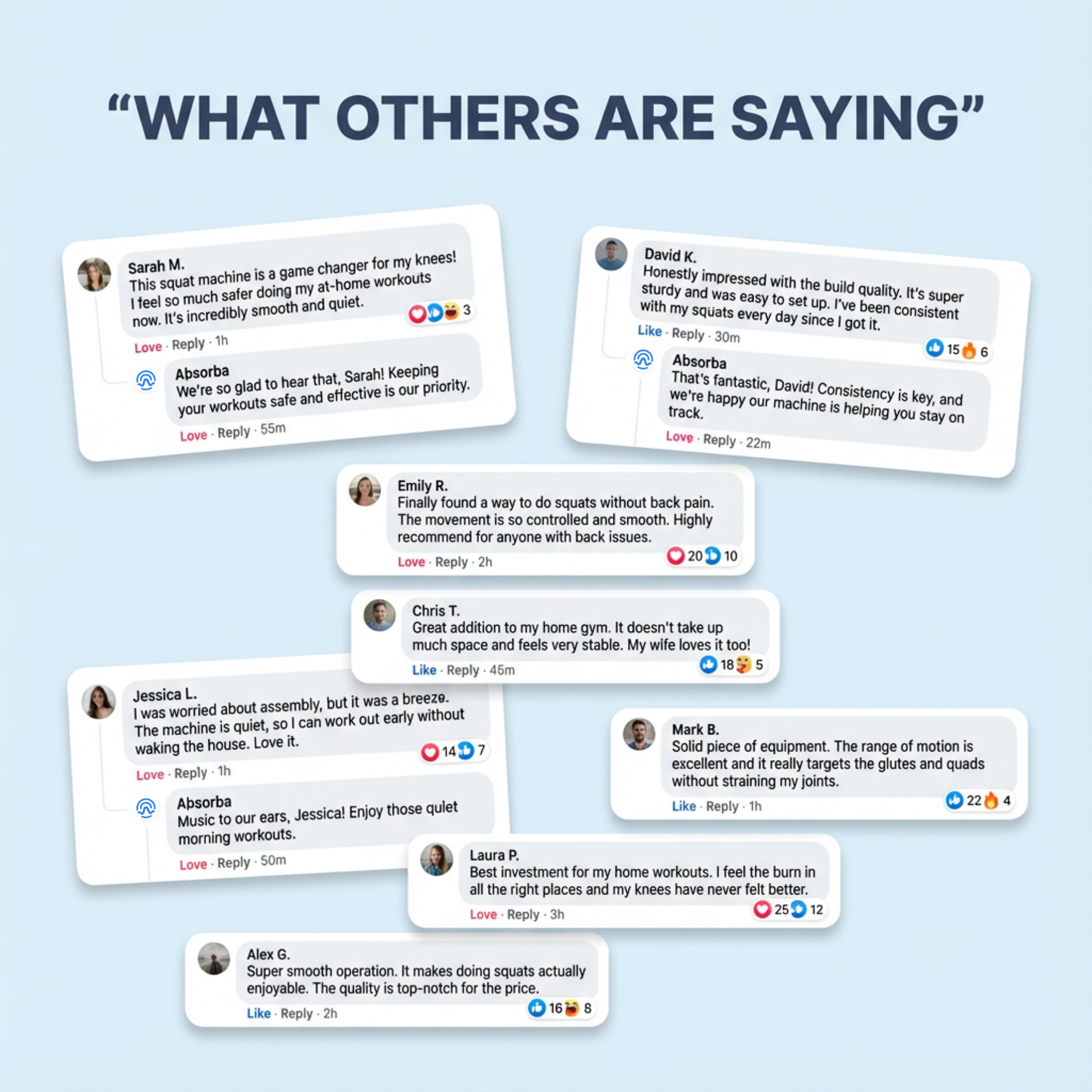 Thousands of women over 45 use Absorba Squat™ as a stable support system for squats, core exercises, and assisted strength movements at home. Instead of avoiding certain exercises or worrying about form, you can move with confidence knowing your body is supported — making it easier to stay consistent without aggravating your joints.