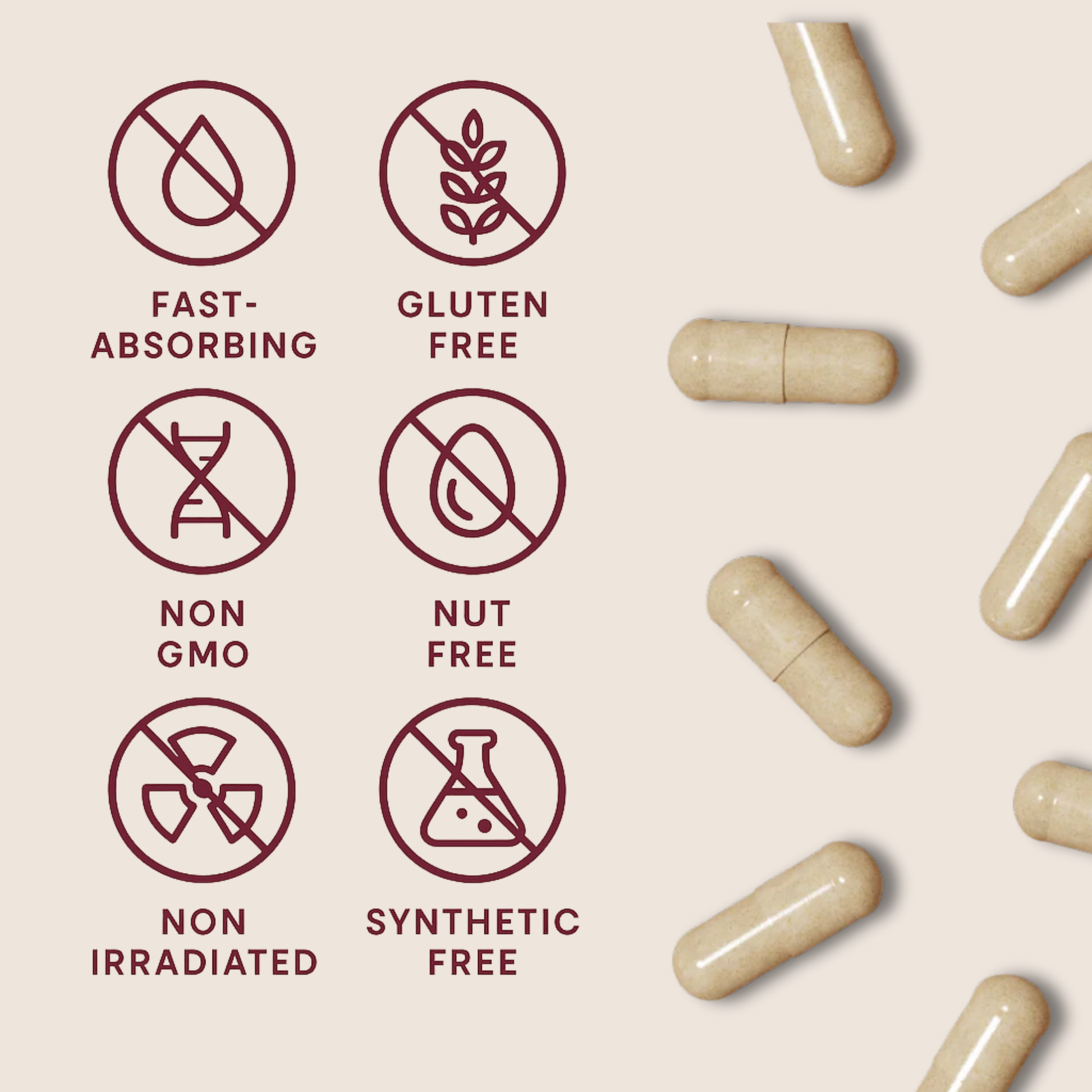 Yes — our capsules are vegan and free from GMOs, gluten, soy, dairy, nuts, artificial colors, artificial flavors, artificial sweeteners, preservatives, and unnecessary fillers. (See complete “Formulated Without” list above.)