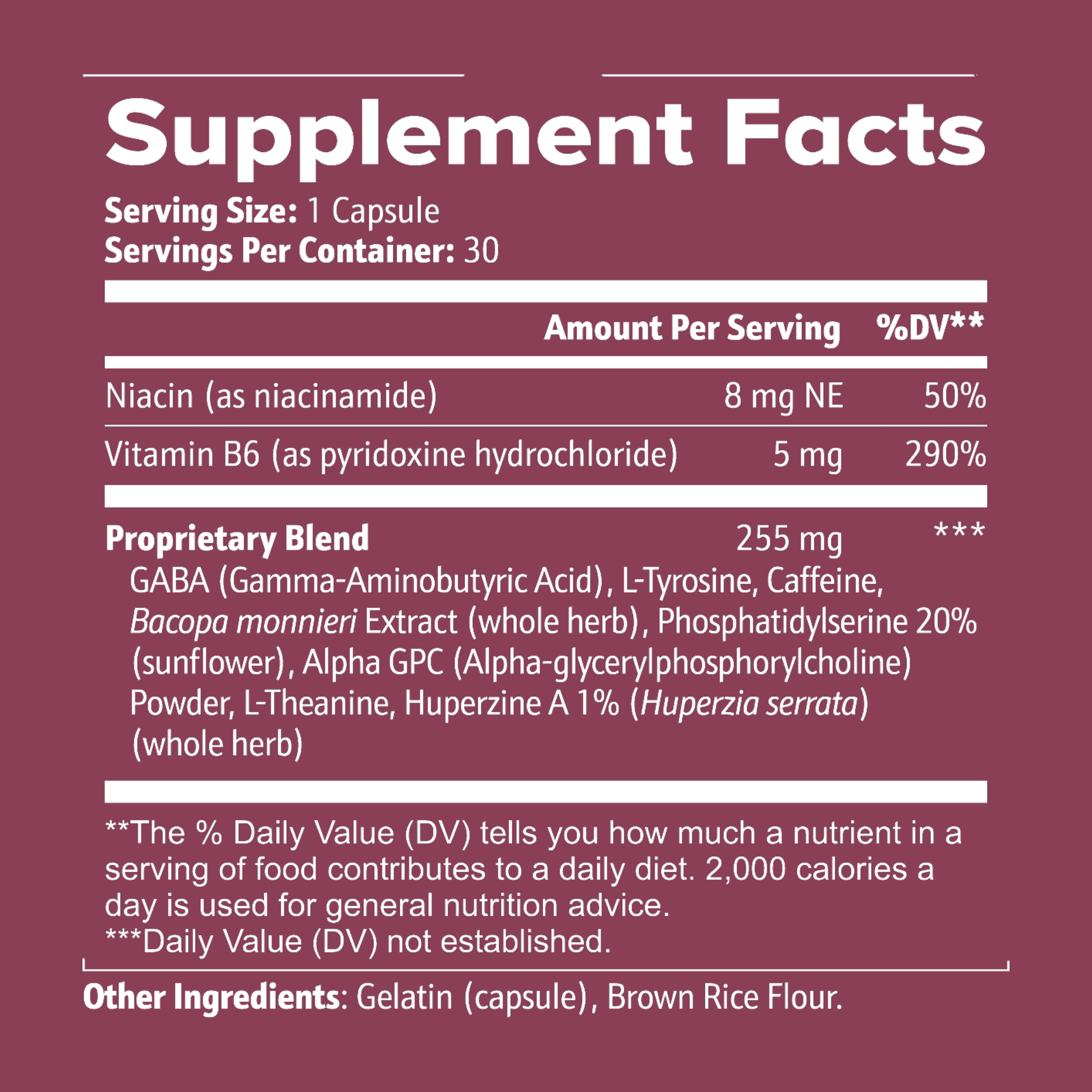 Instead of overstimulating your nervous system, NeuroClarity™ uses gentle ingredients known to support:**